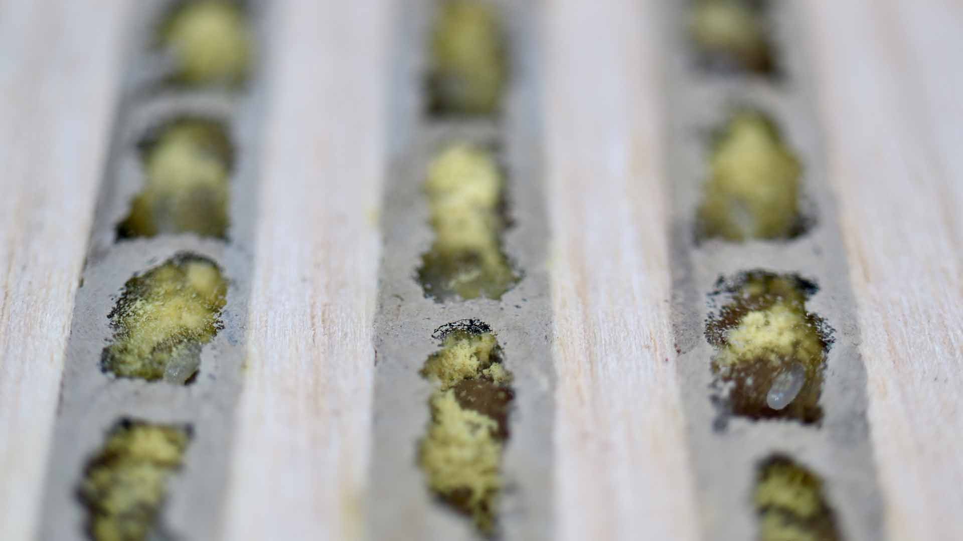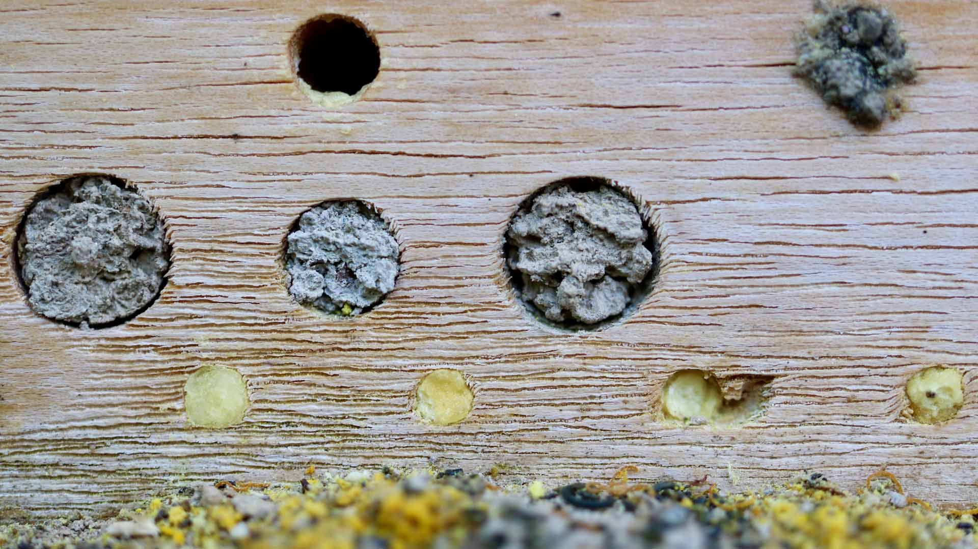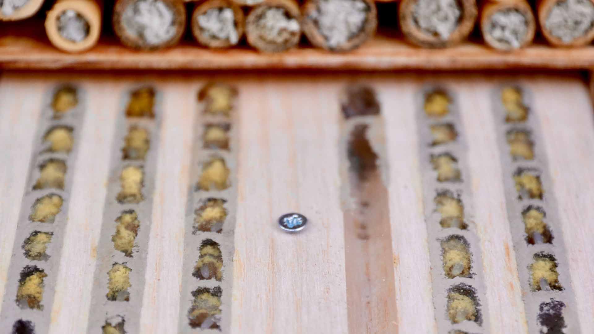 Die Startpopulation besteht aus Kokons der Roten Mauerbiene (Osmia bicornis) sowie der Gehörnten Mauerbiene (Osmia cornuta). Diese einheimischen Arten sind in Mitteleuropa weit verbreitet.
